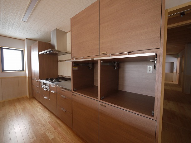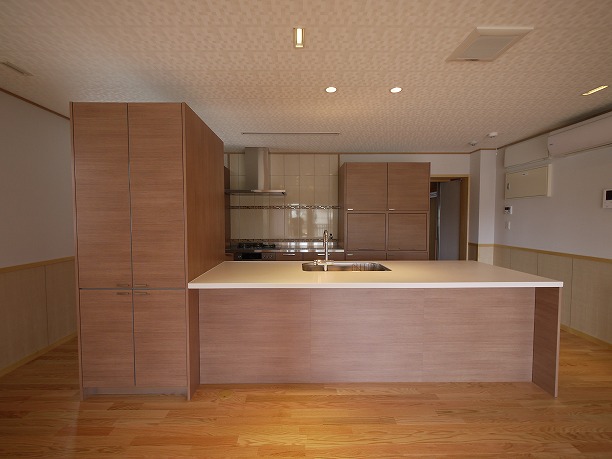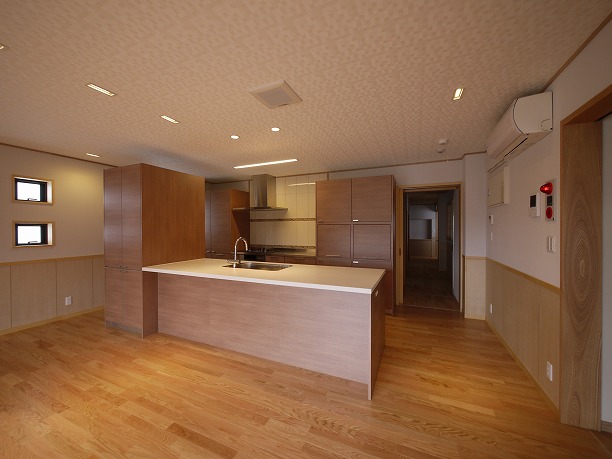 キッチンは2Fに位置し、ダイニングと合わせるとかなり広い空間を確保していただけた。